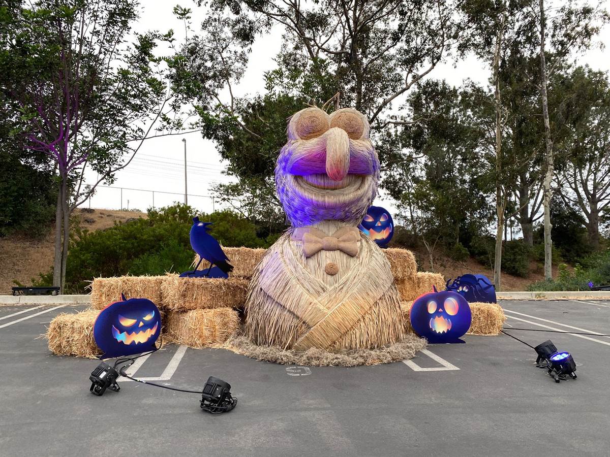 Upon entering the Hallowstream drive-in parking lot, I was impressed by the Halloween decorations and promotional displays themed to Disney and Disney+ properties like LEGO Star Wars: Terrifying Tales, the now-iconic “Zombies” episode of What If…?, Oogie Boogie from Tim Burton’s The Nightmare Before Christmas, Ursula the Sea Witch from The Little Mermaid, the Sanderson Cottage and Old Burial Hill from Hocus Pocus, and more. There was even a giant-sized straw Gonzo (pictured above) to celebrate Muppets Haunted Mansion.