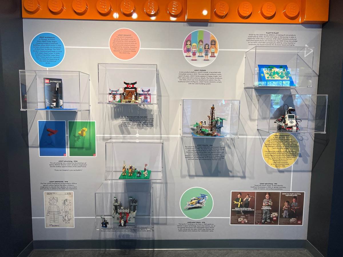 In this all-new attraction, LEGO history comes to life with playful, photo-worthy displays, including an interactive Minifigure trading wall. Floor-to-ceiling colorful graphics illustrate chapters of LEGO history, including the first LEGO toy ever created and the original minifigure.