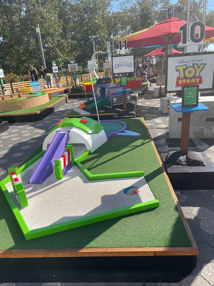 Hole 10 takes you “To infinity and beyond” with the second Toy Story course themed to Buzz Lightyear. Shooting your ball up a ramp down Buzz’s laser blaster, if you line up the shoot just right you can get a hole-in-one.