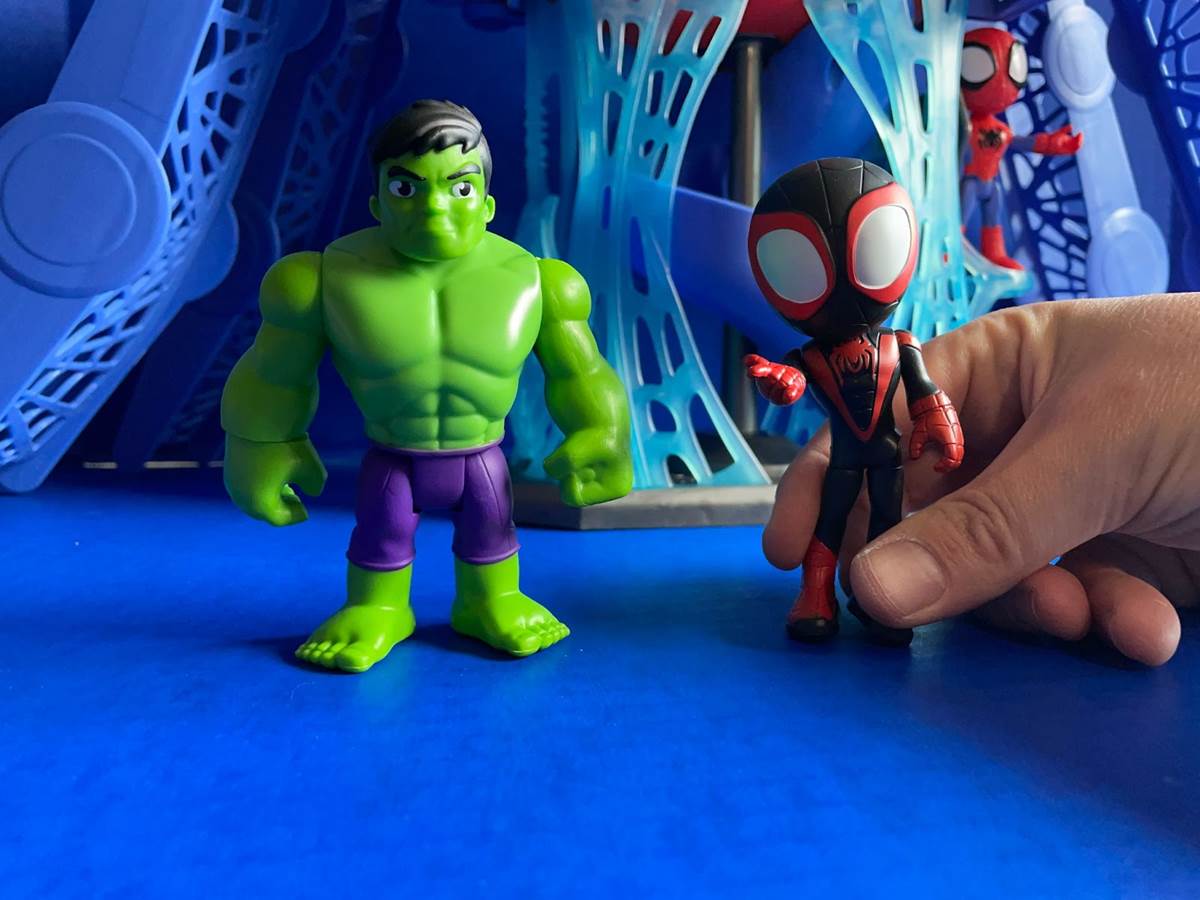 There is a third Web-Crawler option, the Ultimate Web-Crawler. This is the largest one available, with room for 4 figures the size of Spidey, or 3 if you’re including Hulk. It comes with the same Spidey figure.