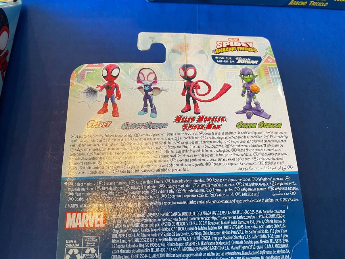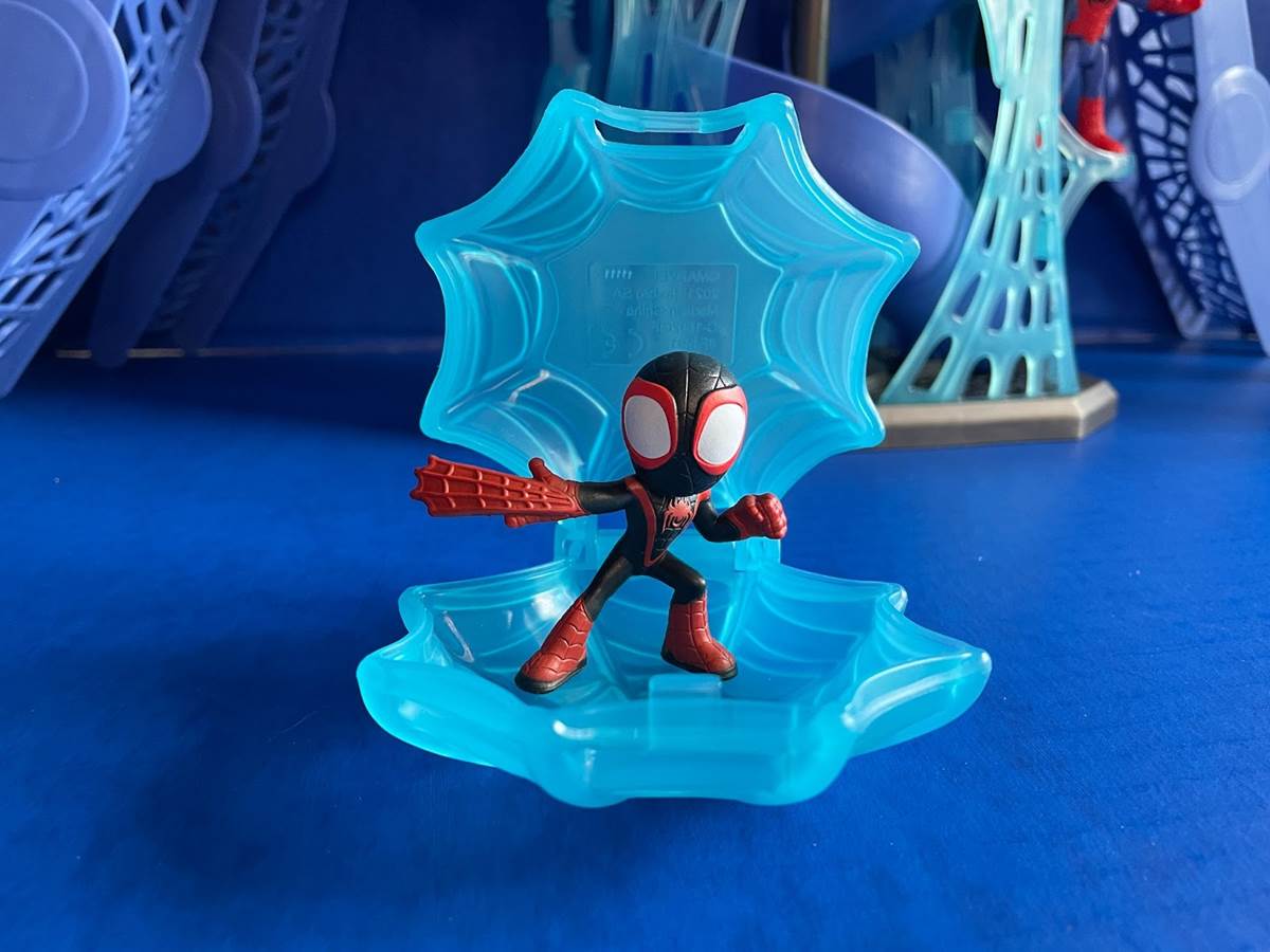 Available in this same individual packaged collection are Spidey, Miles Morales (aka Spin) and Green Goblin. The Spidey figure appears to be the same as the one included in the playset, but he comes with an expanding web accessory.