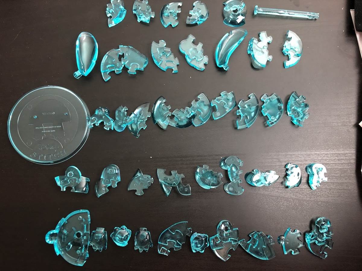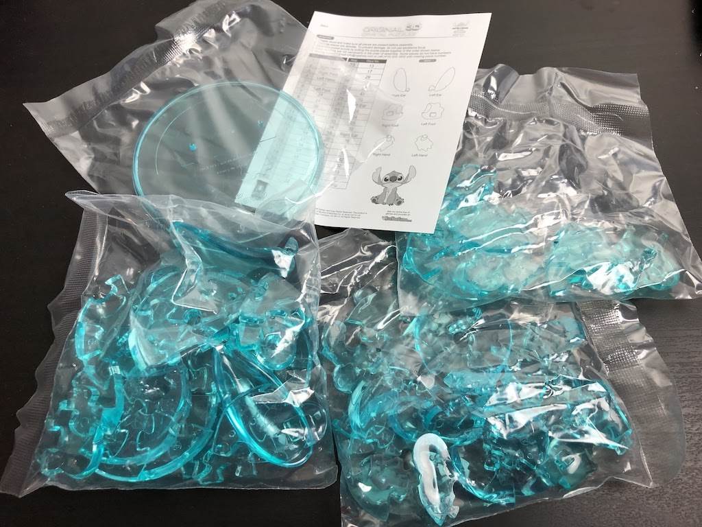Dumbo proved easy enough, so Stitch should be a breeze...ha! Not so much. I followed my same untimed sorting pattern, organizing by step which still took rather long, but I believed would help with overall assembly. The Stitch figure is a pretty teal green and features the alien giving an innocent look. I started my timer and immediately ran into trouble with his hands and feet. After about 4 minutes of struggle, I got anxious and stopped my timer (cheating I know). Once I got past the troublesome appendages, I restarted the stopwatch. A total of 15 long minutes, 25 seconds and 43 pieces later, I had a beautiful Stitch to display and was satisfied with the end result.