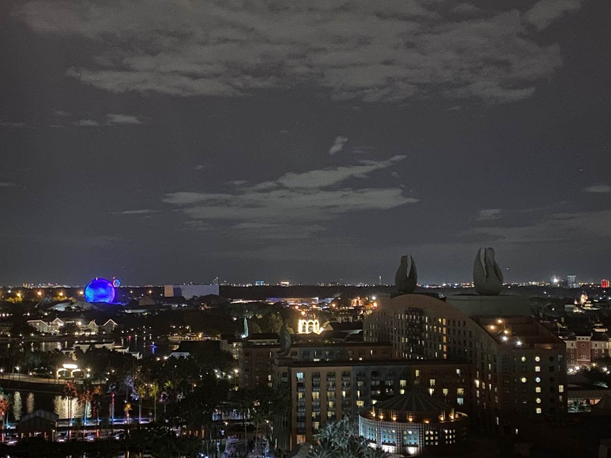 Still inside, the floor-to-ceiling windows provide some of the most stunning views on Walt Disney World property. On one side you can see EPCOT and the Crescent Lake area, on another the Hollywood Tower Hotel and the landscape of Disney’s Hollywood Studios. You can also head to another set of windows and look down World Drive, spotting the Magic Kingdom, Transportation and Ticket Center, and Disney’s Contemporary Resort.
