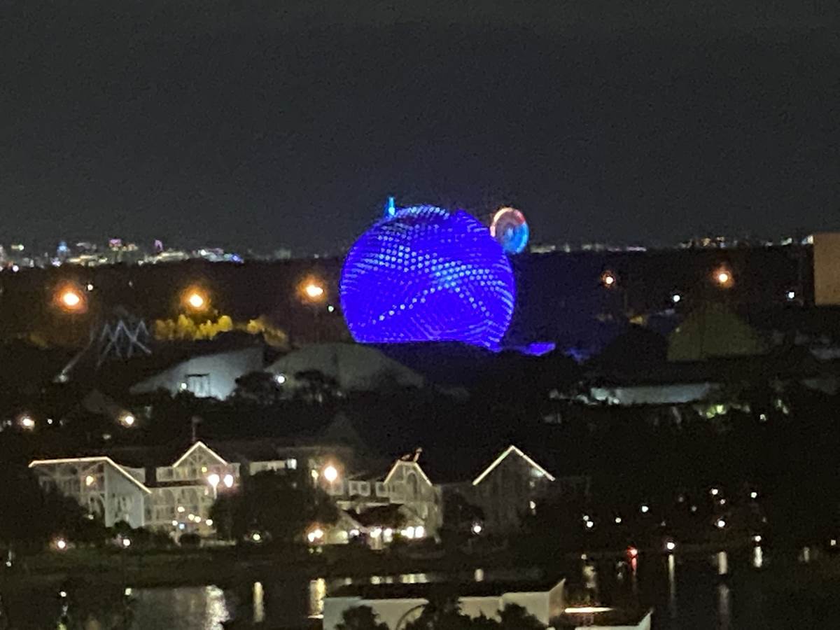 The VUE Terrace, outside, overlooks Crescent Lake, with the neighboring Walt Disney World Swan and Walt Disney World Dolphin, Disney’s Boardwalk, and Disney’s Yacht & Beach Club Resort, on the horizon. The real draw from out here is the view of EPCOT in the evening hours, where you can see the fully illuminated Spaceship Earth as the Beacon of Magic for the 50th anniversary of Walt Disney World. But the sky truly comes alive when the new nighttime fireworks spectacular at the park starts, and the VUE Terrace provides a unique view of Harmonious.