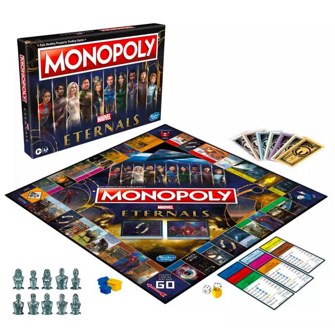 - This special Eternals edition of the classic Monopoly board game is inspired by the Marvel Studios movie about the race of immortal aliens from a distant planet who arrived on Earth thousands of years ago to protect humanity from a race of alien predators.