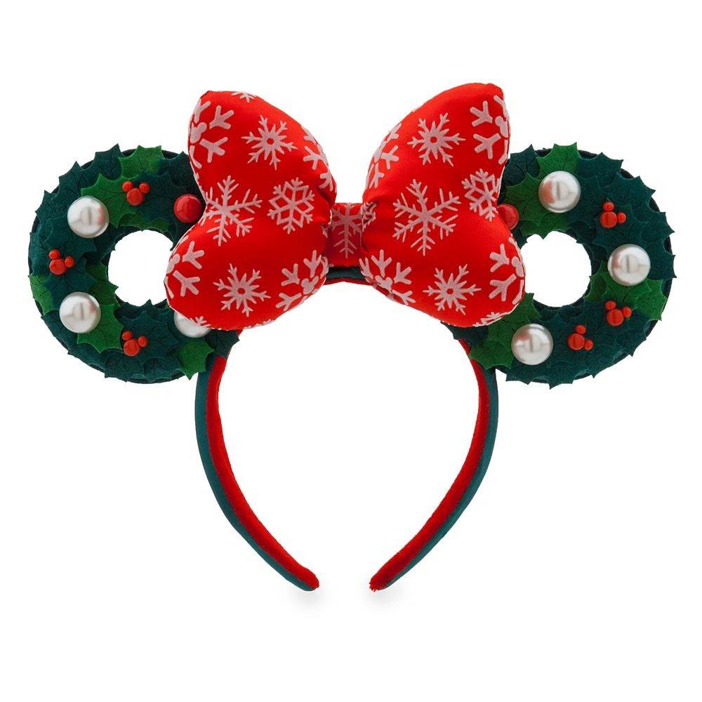 Planning a visit to the Disney parks this winter? Dress up your look with these jolly wreath ears. Our favorite elements are the Mickey heads and silver balls that decorate the wreaths. Of course the puffy red bow covered with snowflakes is really adorable too...