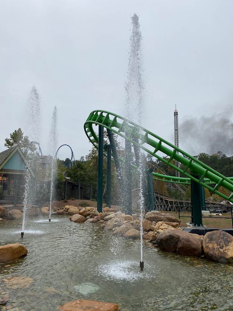 Dollywood’s newest roller coaster is Dragonflier, in the all-new for 2019 Wildwood Grove area of the park. As you can see from the picture, Dragonflier is a very picturesque ride, with beautiful fountain interactions. Designated as a family coaster, that is actually pretty deceptive, as the first drop and the swoop pictured are actually pretty forceful. I also really love the comfortable restraints on this coaster that come over the shoulder while acting more as a lap bar.