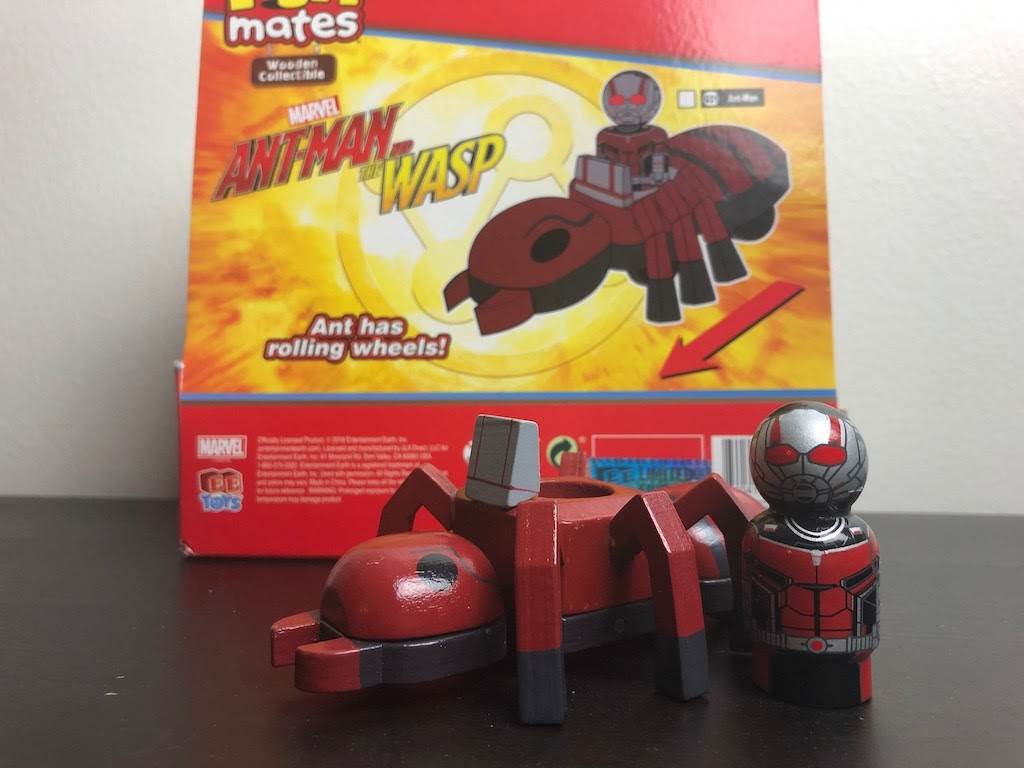 It features a large ant on wheels and a small Ant-Man Pin Mates that can sit on the ant’s back.