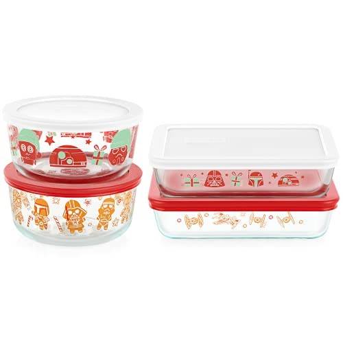 Pyrex Star Wars Holiday Decorated Glass Food Storage Set, 8 Piece