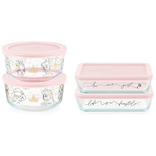 Pyrex Disney Princess Characters Decorated Glass Food Storage Set, 8 Piece