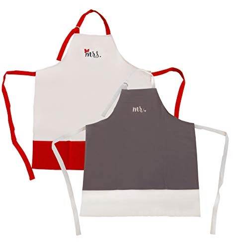 Disney Cotton Apron, 2pk - Durable yet Light Weight Kitchen Apron, Mr. & Mrs.