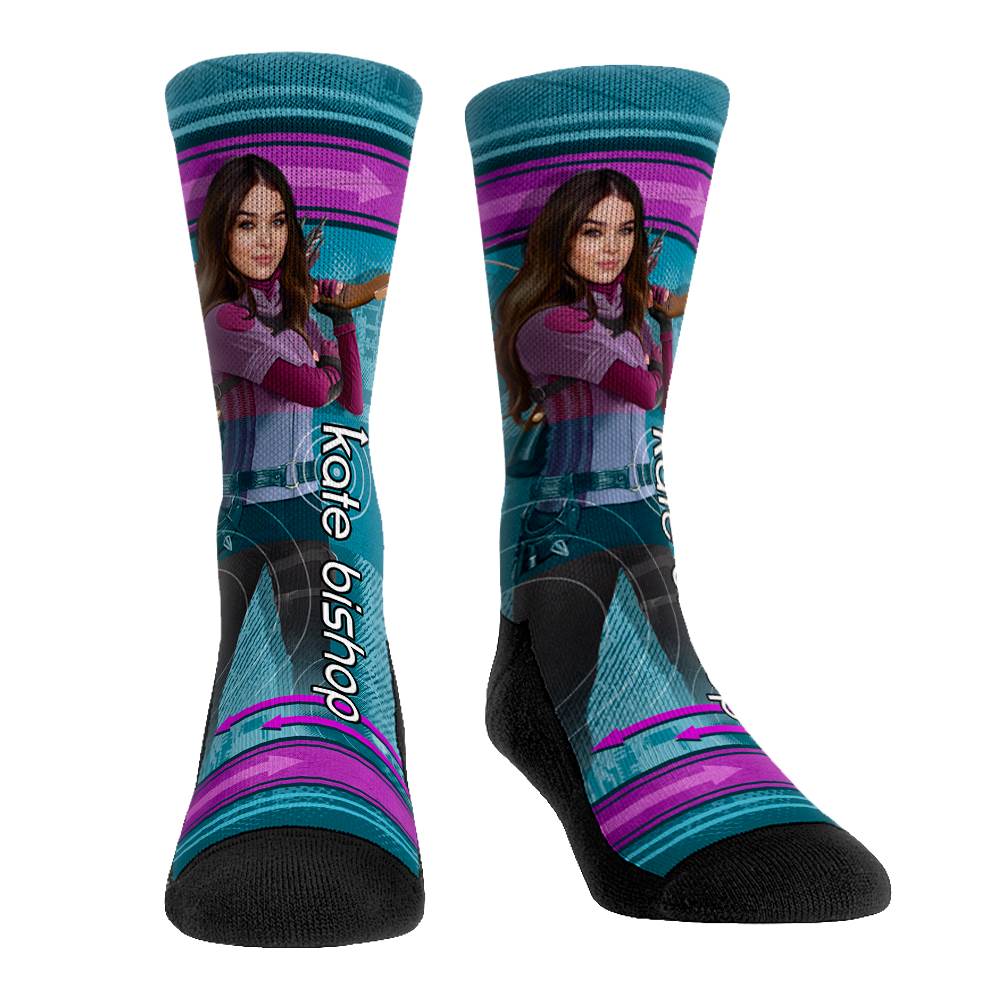 Customize your Marvel wardrobe with incredible socks from Rock ‘Em featuring Clint and Kate, or fantastic T-shirts and costume hoodies from Her Universe and Hot Topic!
