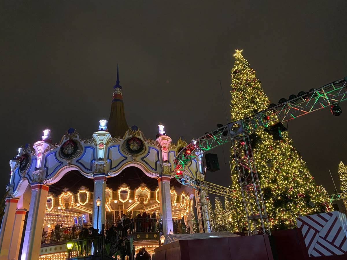 Directly behind the Carousel Columbia is the park’s main Christmas tree, which also includes a stage offering various different holiday performances.
