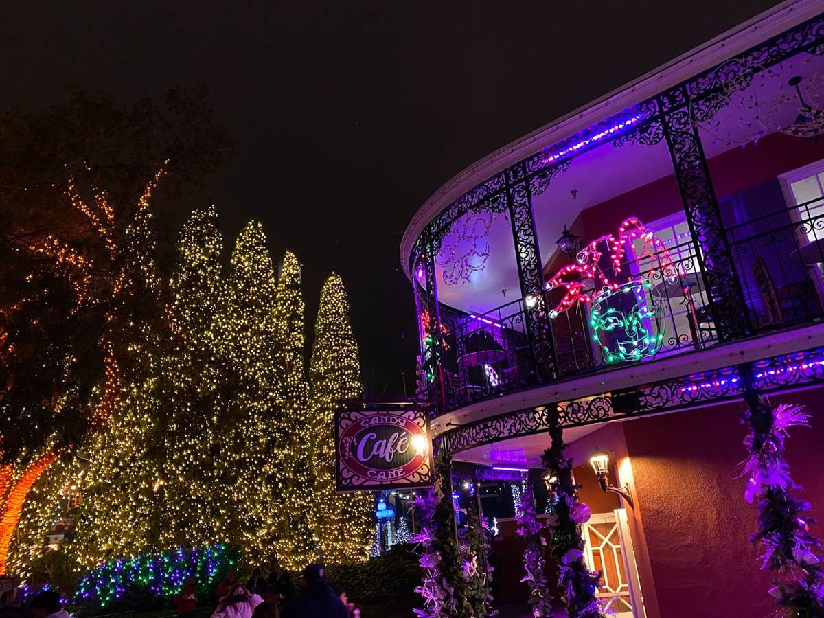 The Orleans Place area of the park was probably my favorite. Think of it as New Orleans Square, without a lot of the intricate details. The entire area was covered in dancing lights, set to some high-energy Christmas songs.