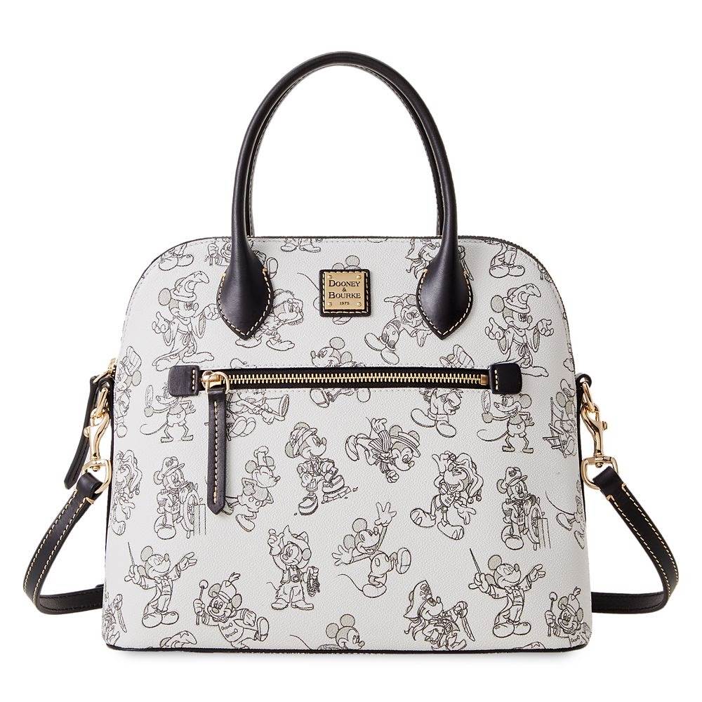 Dooney & Bourke is keeping things simple and classic with their latest Disney release. A new white leather bag accented with black straps and gold hardware spotlights Mickey Mouse throughout a series of sketchbook styles.