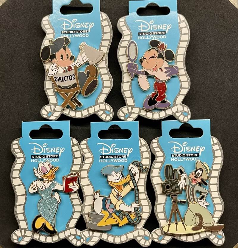 Another open edition pin collection was released this year and come from the Disney Studio Store Hollywood. These pins were released earlier this year and have a very vintage reminiscent art style to them. Each pin shows Mickey, Minnie, Daisy, Donald and Goofy are all dressed in their own Old Hollywood glam. My favorite from this set would have to be Daisy for the classy glitter enamel on Daisy’s dress.