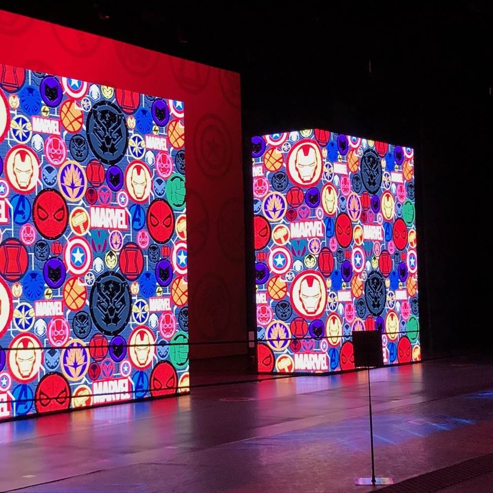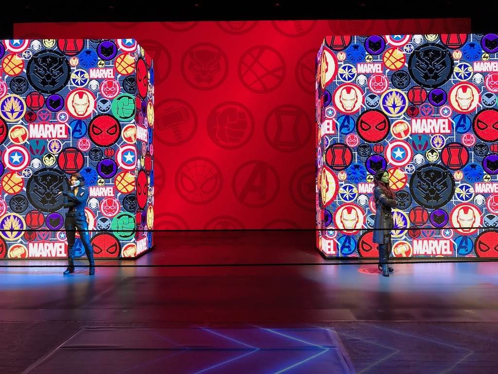 For this experience we queued outside and then were led right to the theater stage which was decorated with two backdrops covered in character logos. We were separated from the backdrops by stanchions, and markings placed on the floor indicated where we could stand to talk to the heroes as well as pose for and take pictures. Two PhotoPass Cast Members were also available to capture the encounters.