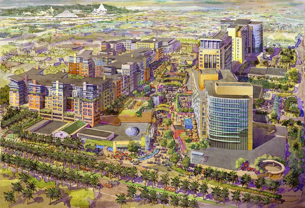 In 2002, demolition of a site near the Disneyland Resort commenced and construction began on a project that had already been stopped and started in the development phase over the previous 6 years for a new ambitious, $600-million project that promised four upscale hotels, an aquarium, shops and a slate of popular restaurants, all literally neighboring the Happiest Place on Earth and their new gate that had opened up only a year before.