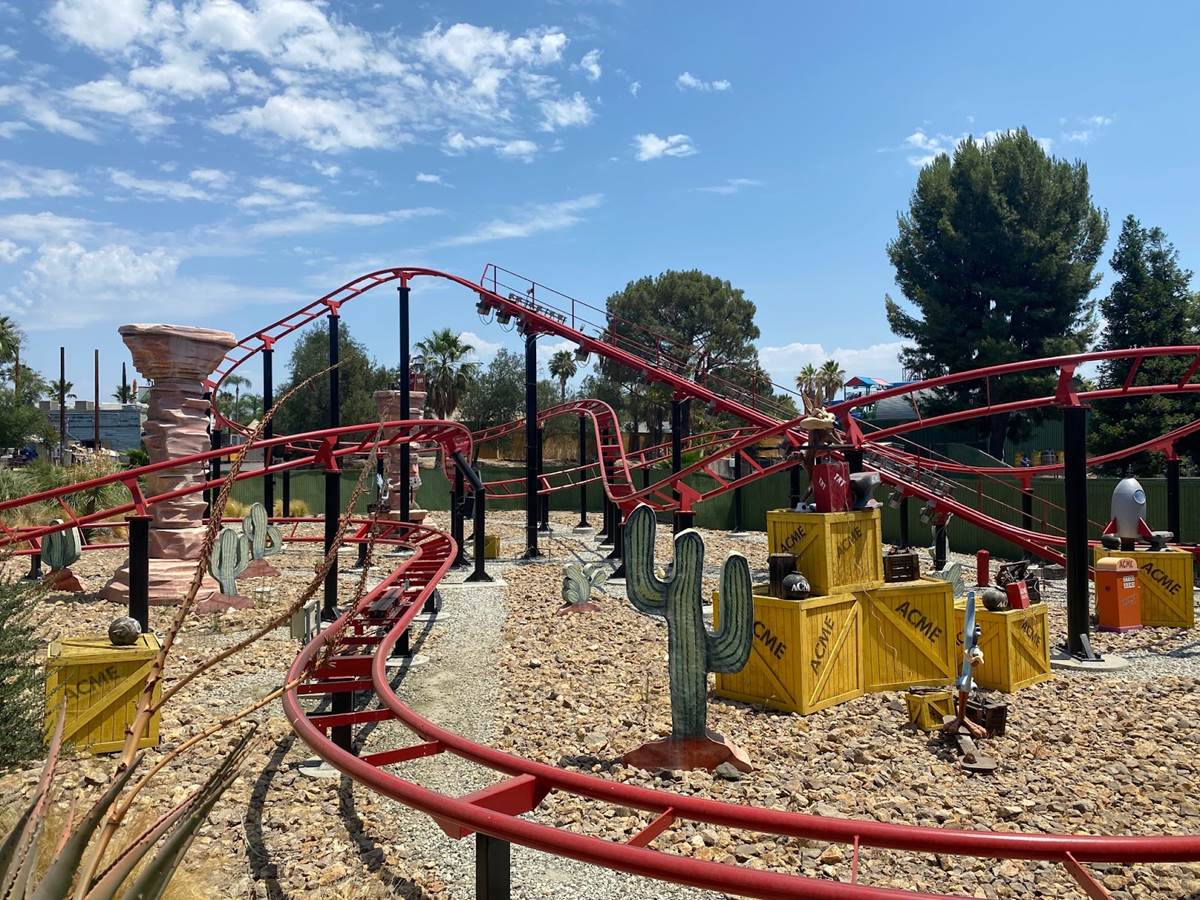 We start at the bottom with a ride that is by no means bad, but rather just small. Road Runner Express is identical to many other kiddie coasters across the country, such as Gadget’s Go-Coaster at Disneyland or Woody Woodpecker’s Nuthouse Coaster at Universal Studios Florida. The theming is actually pretty fun here, utilizing scenes and character figures from Wile E. Coyote and Road Runner shorts. Fun fact: This ride actually originally came from the now extinct Six Flags New Orleans, which was ravaged by Hurricane Katrina in 2005.