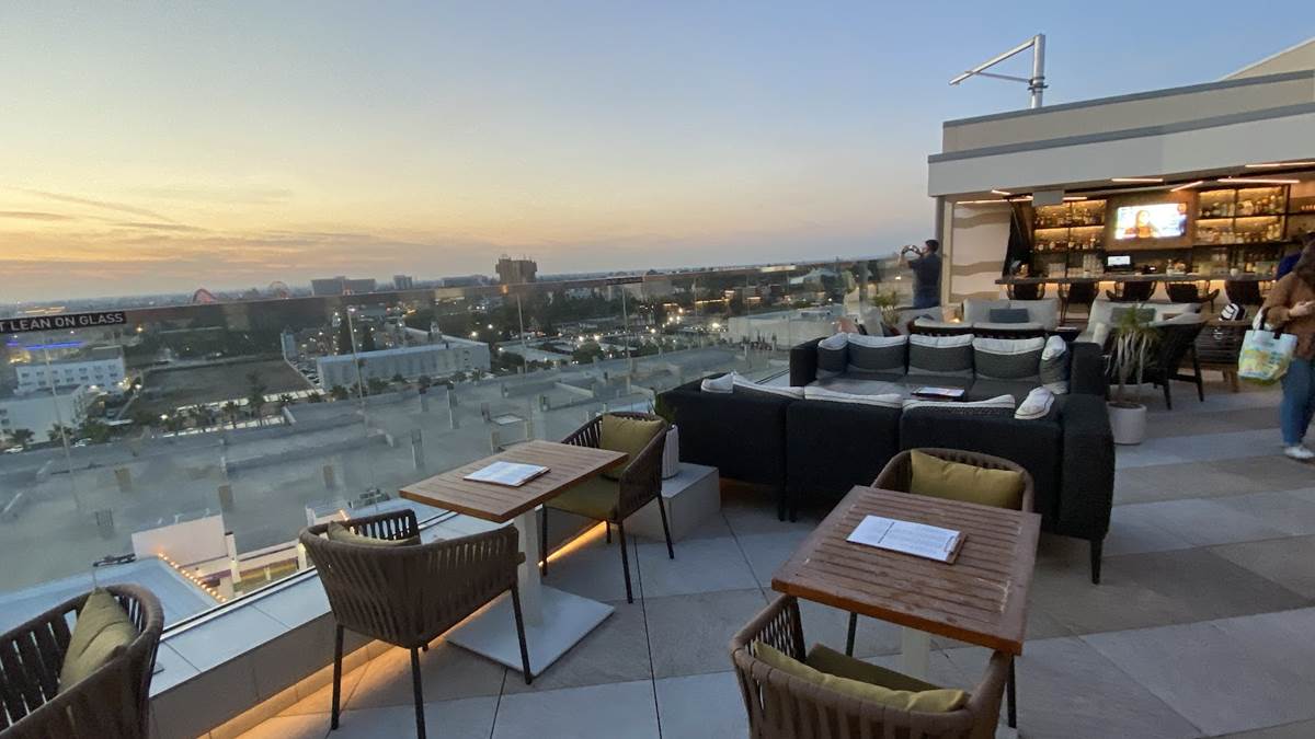 But we’re here to enjoy the rooftop highlight of the resort - the Parkestry Rooftop Bar and Lounge. As of right now, it’s the most elevated bar and lounge area in the city, with views of neighboring Disneyland Resort, the legendary sunsets of Southern California, and on clear days, Downtown Los Angeles and even Catalina Island. We were even told that the legend of the day they saw the famous Hollywood sign from this location, but I call that a legend because I can’t see it when I’m right beneath it. Best of all, this space is open to all, not just those staying at the hotel. Disney fans will love the location as a cursory glance will offer views of Pixar Pier (and likely some of World of Color when it returns), Guardians of the Galaxy - Mission: Breakout, Space Mountain, Matterhorn Bobsleds, and Star Wars: Galaxy’s Edge in the distance. More focus will reveal even more locations like Sleeping Beauty Castle, Grizzly Peak, the top of the Moonliner and other taller visual landmarks of the parks.