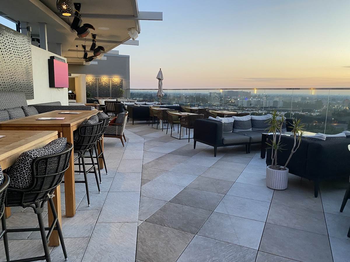 The menu perfectly blends cultural experiences, and culinary expertise through a mix of unique flavor combinations and colorful creations. Items such as the Spanish Albondigas made of pork, beef, scallion, almond romesco, and cilantro, as well as the Asian Chicken Bakso composed of fresh coriander, ginger, vegetable slaw, and spicy plum sauce are available. More traditional fare, like margherita pizzas and charcuterie boards are also available to nosh while taking in the spectacular views offered by the rooftop location.