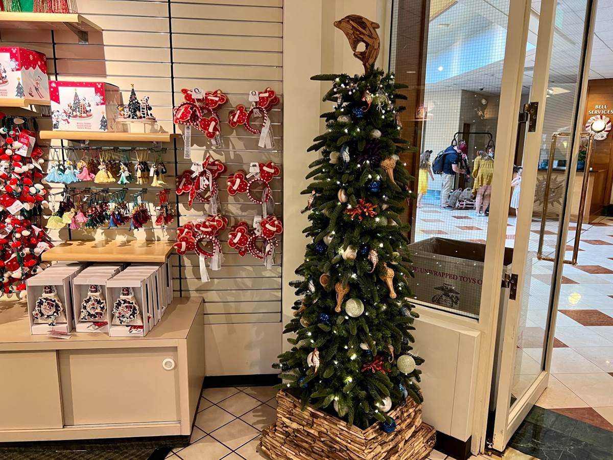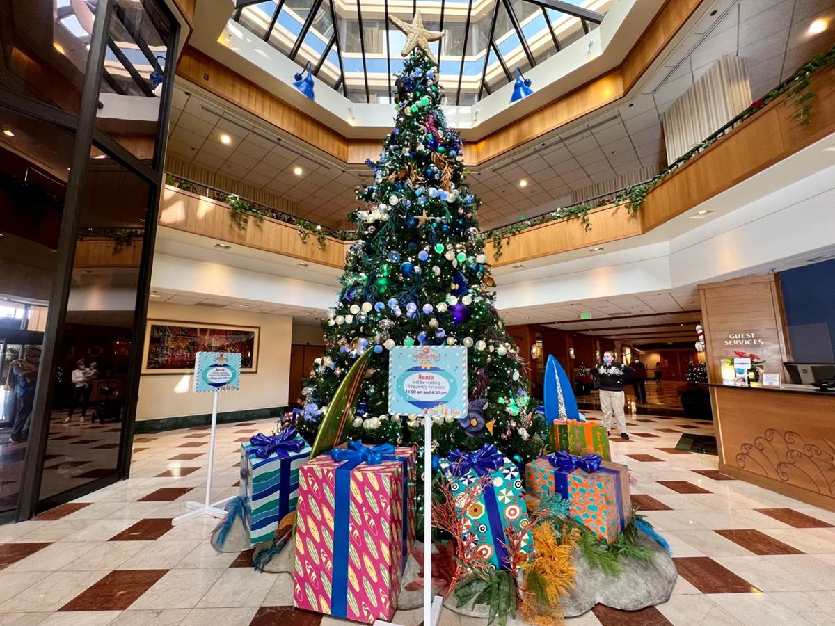 The Disneyland Hotel may not have a main tree, it does have one of the best themed trees that just so happens to be the photo spot for the big guy, no not Mickey Mouse but Santa Claus!