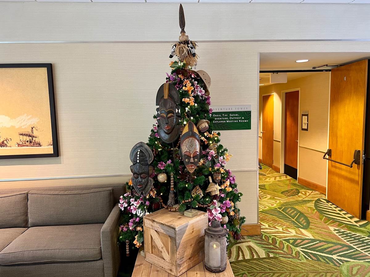 For those of you who are not finiler with the Disneyland Hotel it was built at the same time as Disneyland and just like the park expanded many times over the years, currently there are 3 towers each themed after a different land of the park with all the above photos being from the Fantasy Tower. These next two trees are some of my favorites because they are themed for the Frontier and Adventure towers and have nods to the attractions of those lands.
