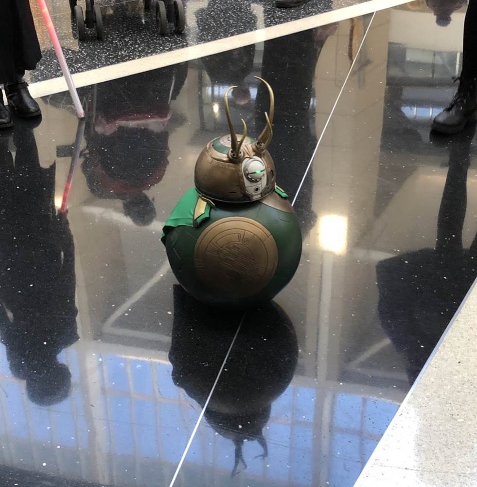 Sticking with the Asgardians for a moment, we also saw Sylvie walking the show floor with Alligator Loki (Loki)! And outside the exhibitor hall, we found this Loki-BB-8 mash up proving that the small droid had found his “Glorious Purpose.”