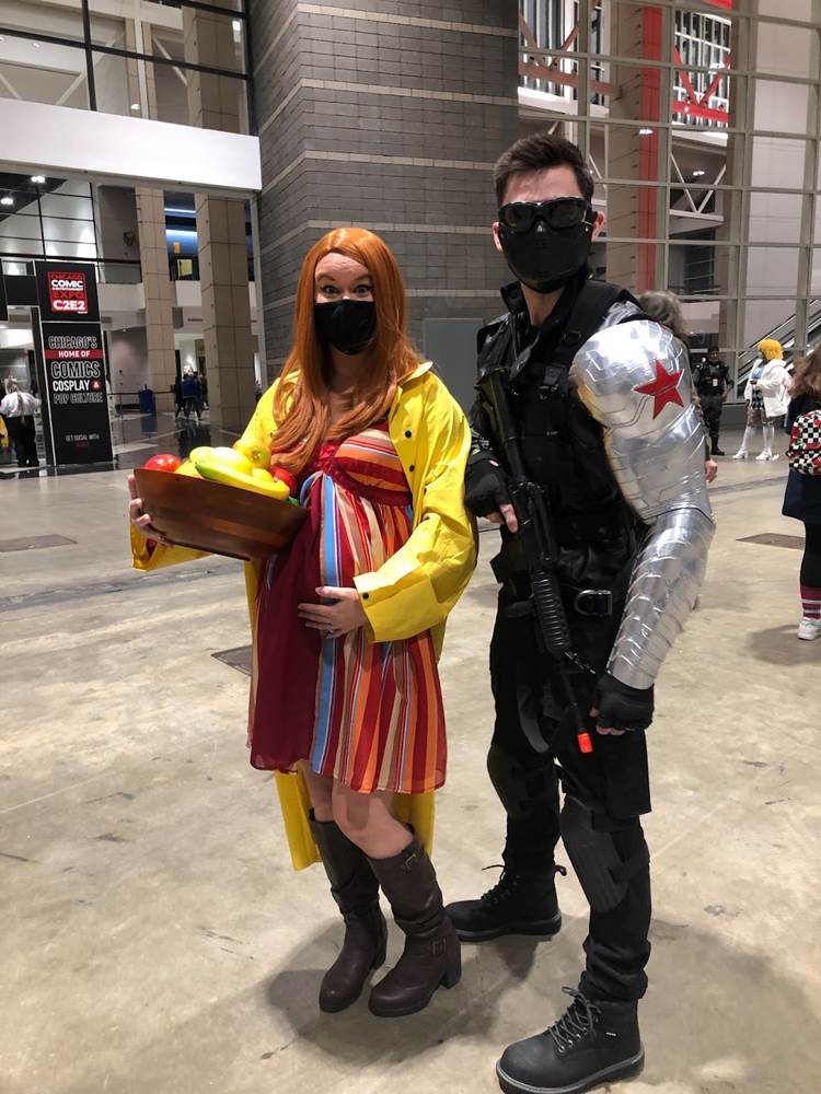 With so much incredible Marvel content delivered to fans this year, it’s no surprise that we saw so many costumes. Here we have Peggy Carter holding a photo of Steve Rogers, Doreen Green aka Squirrel Girl and her sidekick Tippy-Toe, and my personal favorite pregnant Wanda Maximoff (WandaVision 1970s look) hanging out with The Winter Soldier.