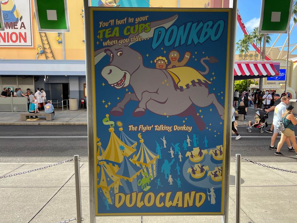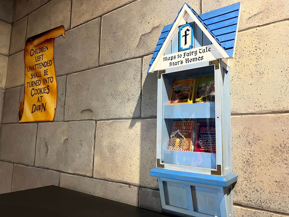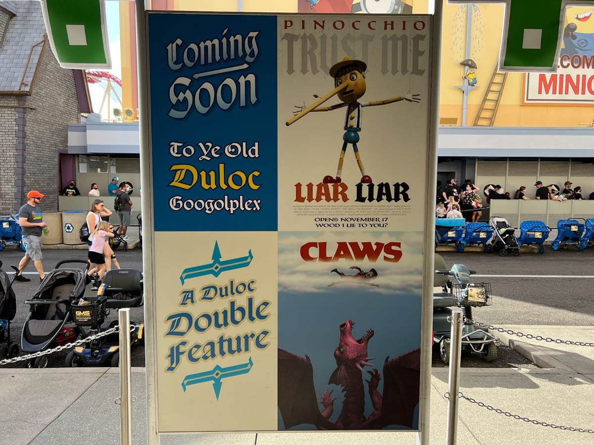 In case you forgot that you are in a Hollywood movie studio, hand, hoof, and talon prints in cement might remind you that Duloc has gone Hollywood for this immersive moviegoing experience.