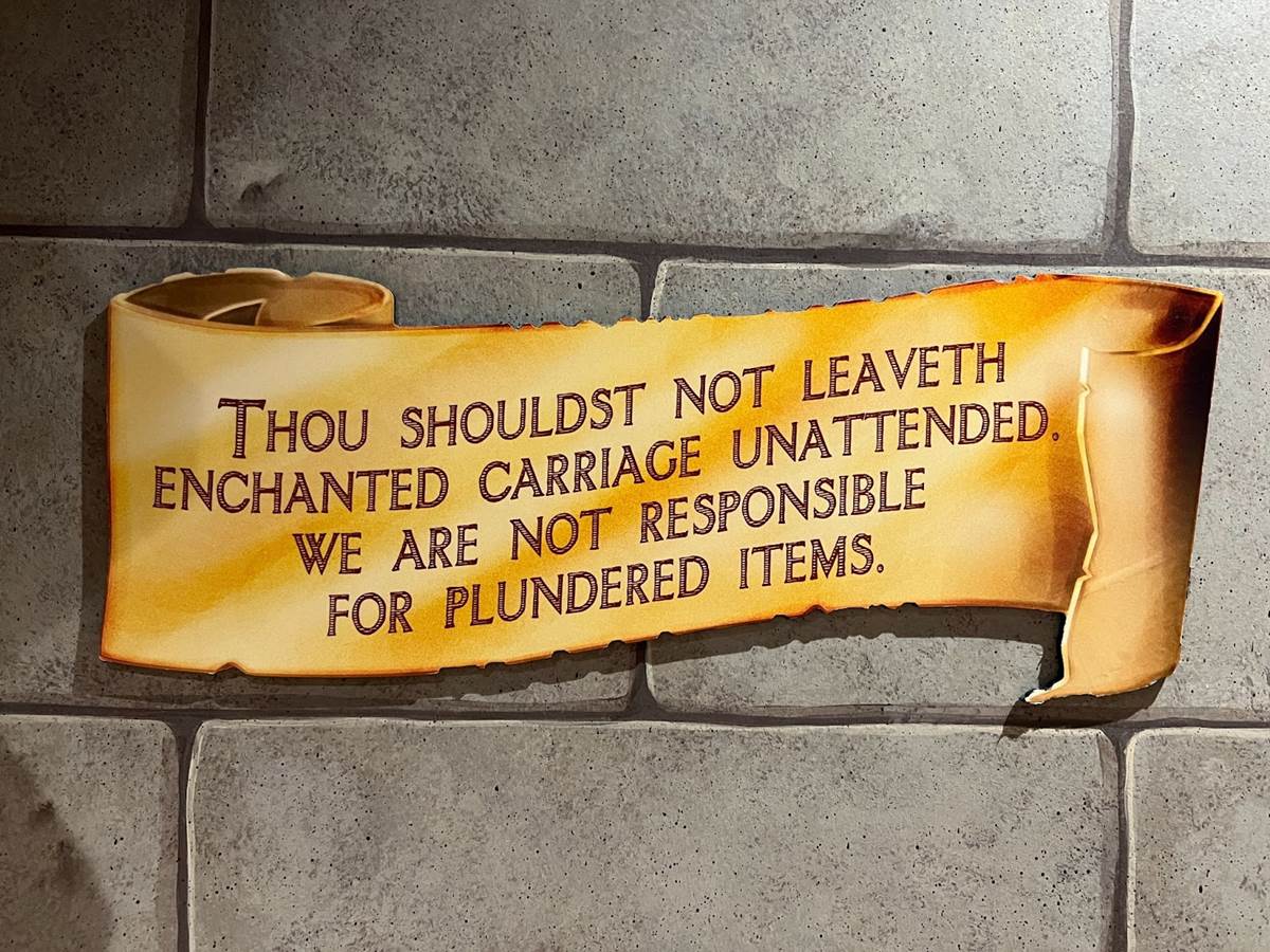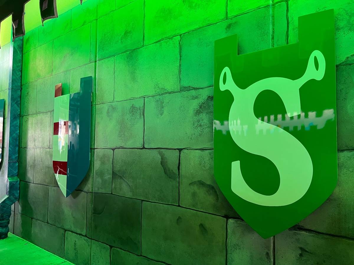 As you transitioned from the outdoor queue to the preshow room, you got a sense of the adventure that awaits with themed shields.