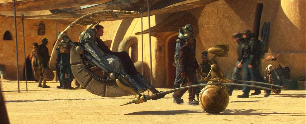 26 - Rickshaw Droid: We’ve seen this guy before, or at least one just like it, carrying Anakin Skywalker and Padmé Amidala through the streets of… you guessed it– Mos Espa. Here it’s carrying two members of the Bith species.
