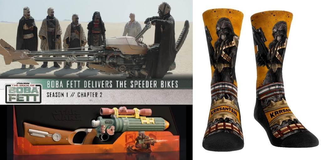 Disney and Lucasfilm have extended their Bring Home the Bounty campaign with Bonus Bounties that coincide with the new episodes of The Book of Boba Fett. This week Hasbro brings fans an awesome Nerf Blaster; Fifth Sun is back with new attire; Rock ‘Em Socks showcases their latest design, and TOPPS offers fans both physical and digital collectors’ cards.