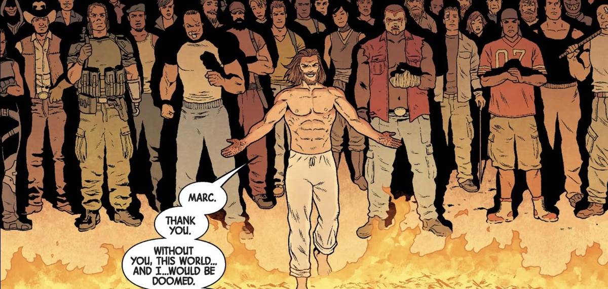As you can see in the images above, both the character in the trailer and the character from the comics seem to have some followers and appear to be preaching to Marc. There are certainly a lot of similarities between these two and it would absolutely be an interesting villain to lead with.
