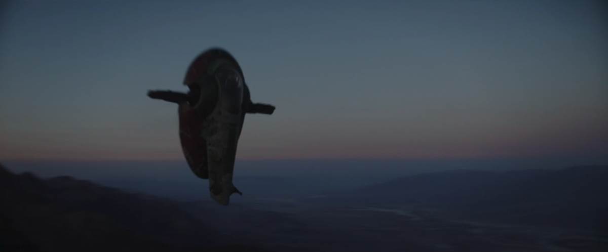 “The Gathering Storm” (directed by Kevin Tancharoen of 2009’s Fame remake) kicks things off with another extended flashback– this time to Boba Fett’s efforts in retrieving his ship the Slave I from the bowels of Jabba’s Palace. And yes, to address the elephant in the room, Fett only refers to the vessel as his “Firespray gunship,” but that’s been the in-universe class of the Slave I for many years so it doesn’t bother me too much, though why Lucasfilm has suddenly decided that the word “slave” is too hot for Star Wars is beyond me. Alone in the desert on his trusty bantha, Fett spies the flares in the night sky from “The Gunslinger” episode of The Mandalorian and finds Fennec Shand left for dead by Din Djarin and Toro Calican, so he brings her to an underground cybernetics parlor on the outskirts of Mos Eisley to have her patched up. Together they infiltrate Bib Fortuna’s parking garage in an amusing heist sequence that features some prequel-style slapstick humor with the palace droids.