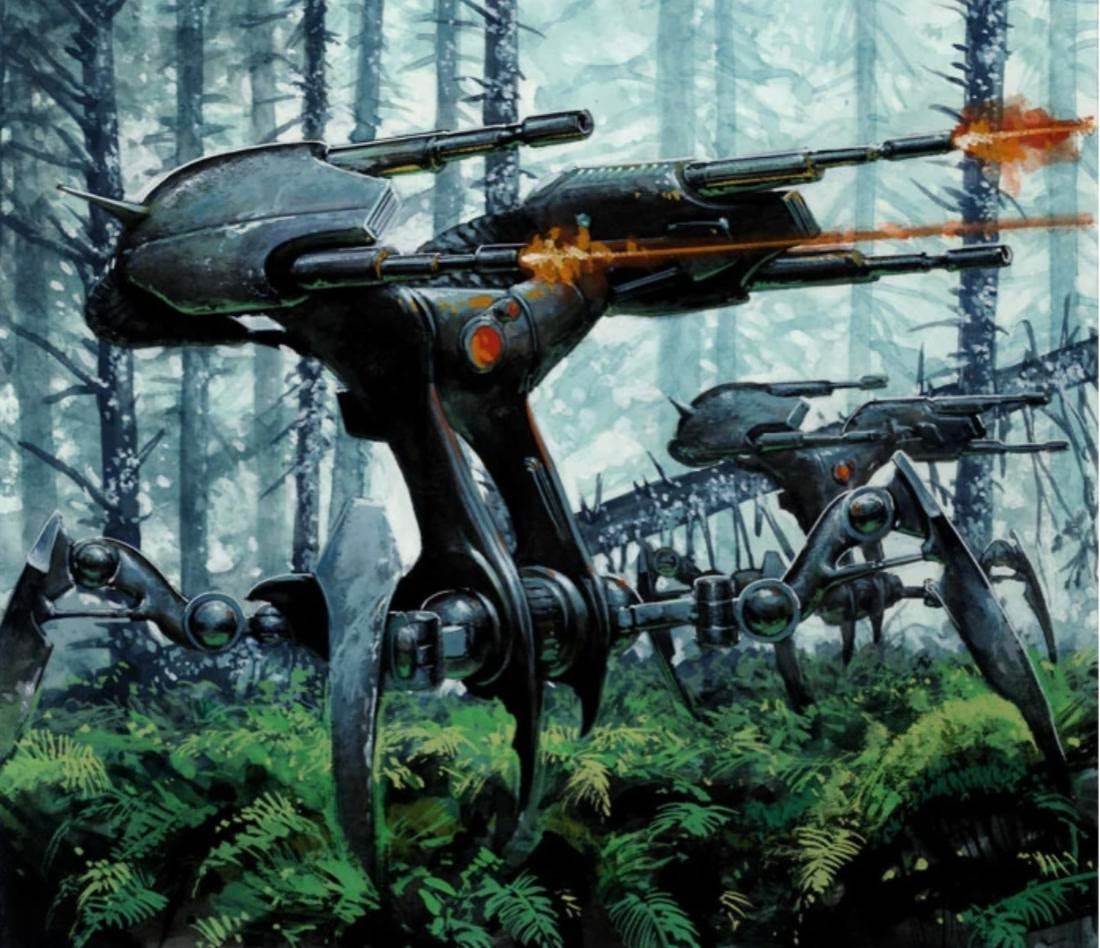 6 - Scorpenek Droid: These walking cannons were created in concept art for Star Wars: Episode II - Attack of the Clones and have appeared in some reference books, but never on-screen until now. They seem to utilize the same kind of deflector shields we’ve seen on other droids and vehicles that will allow slow-moving objects pass through (see the Battle Droids walking through the enormous Gungan shield during the Battle of Naboo in Episode I - The Phantom Menace), but not energy weapons or accelerated projectiles.
