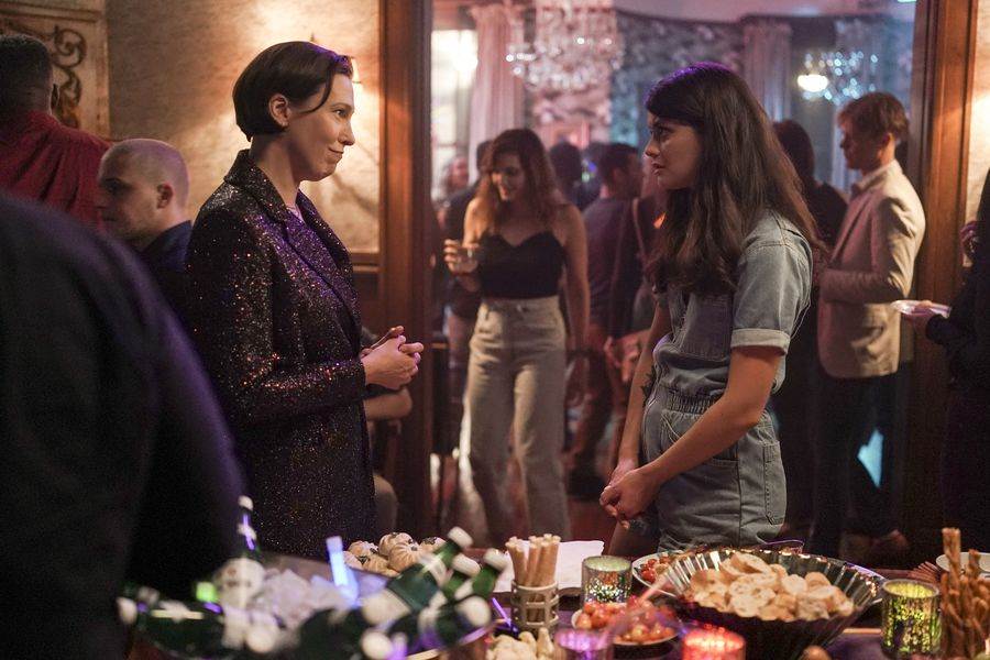 Sober Sam skips over James' request to dance, saying she’s not ready to see herself dance “without a gin and tonic,” and is welcomed by her sponsor Olivia donning a glitzy pantsuit. She surmises that Sam’s plans to get her fix have crumbled a bit early. Olivia is both intuitive and correct. As her wife, Stephanie joins the pair, she’s looking for their giant cat Josh, because she’s always worried he’ll get stolen. To be fair, he’s a handsome cat and James is infatuated by Josh in the corner. Moving onward, Olivia tells Sam not to worry about her troubles from the afternoon and promises her body will get used to it eventually.