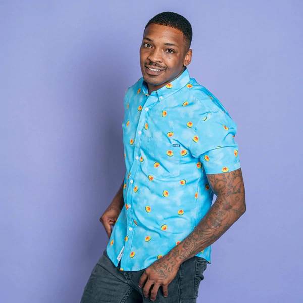 The Pixar Ball has stolen our hearts without a word of dialogue. Now you can bring a smile with this beautiful blue sky background shirt dotted by the iconic Pixar ball. Remember when it “rolled” cross-country to celebrate the opening of Toy Story Land?