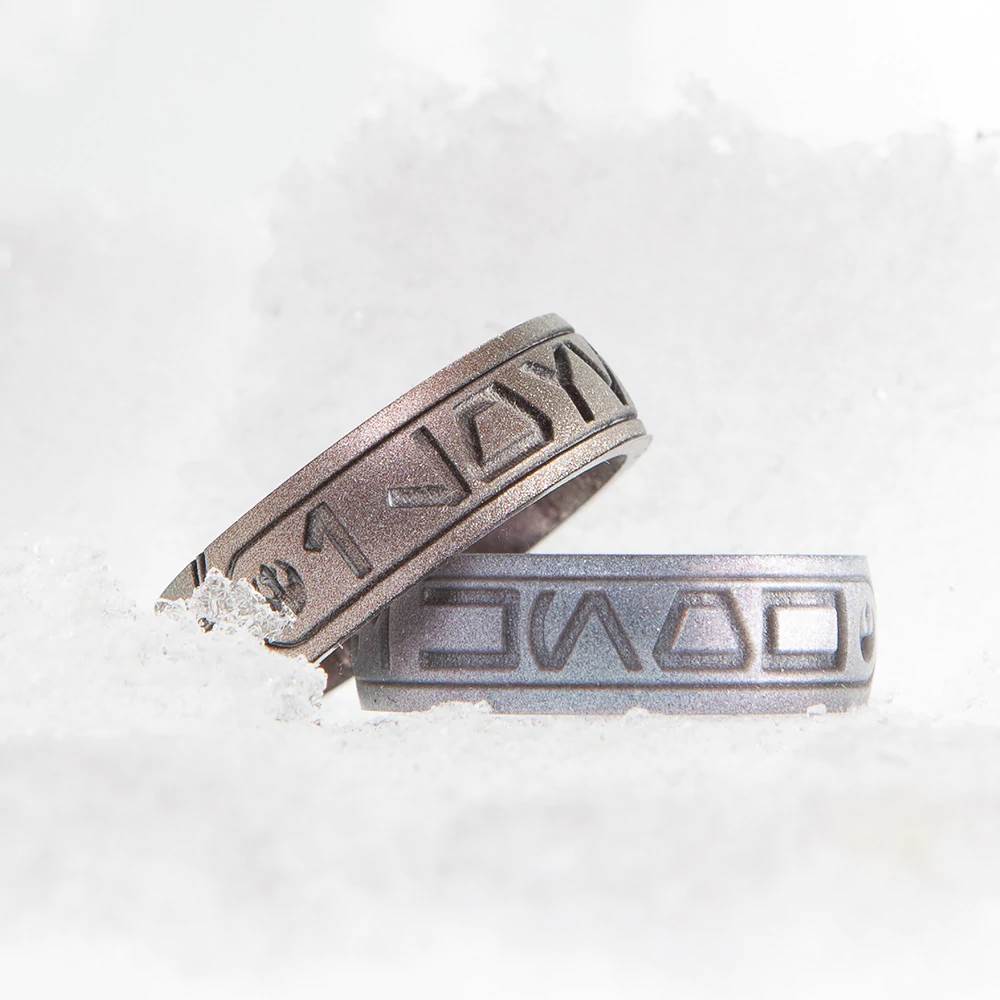 If you prefer to showcase your love of Star Wars and your romance in a less obvious way consider this Aurebesh ring set from Enso. Matching silicone rings feature the famous exchange between Leia and Han Solo as he faced the Carbonite Chamber.