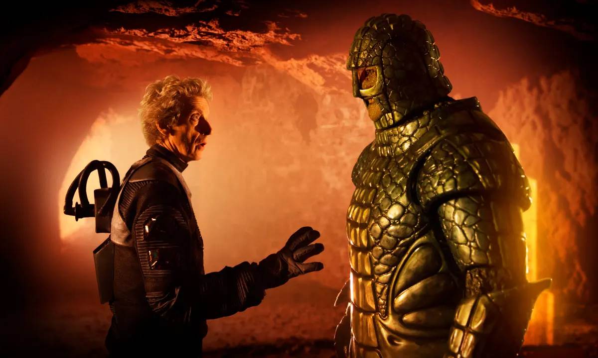 I can’t seem to find the exact moment that this happens, but in the 2017 episode “Empress of Mars,” Peter Capadli as the Twelfth Doctor makes a reference to Frozen while talking to a newly discovered Ice Warrior on Mars all the way back in 1881.