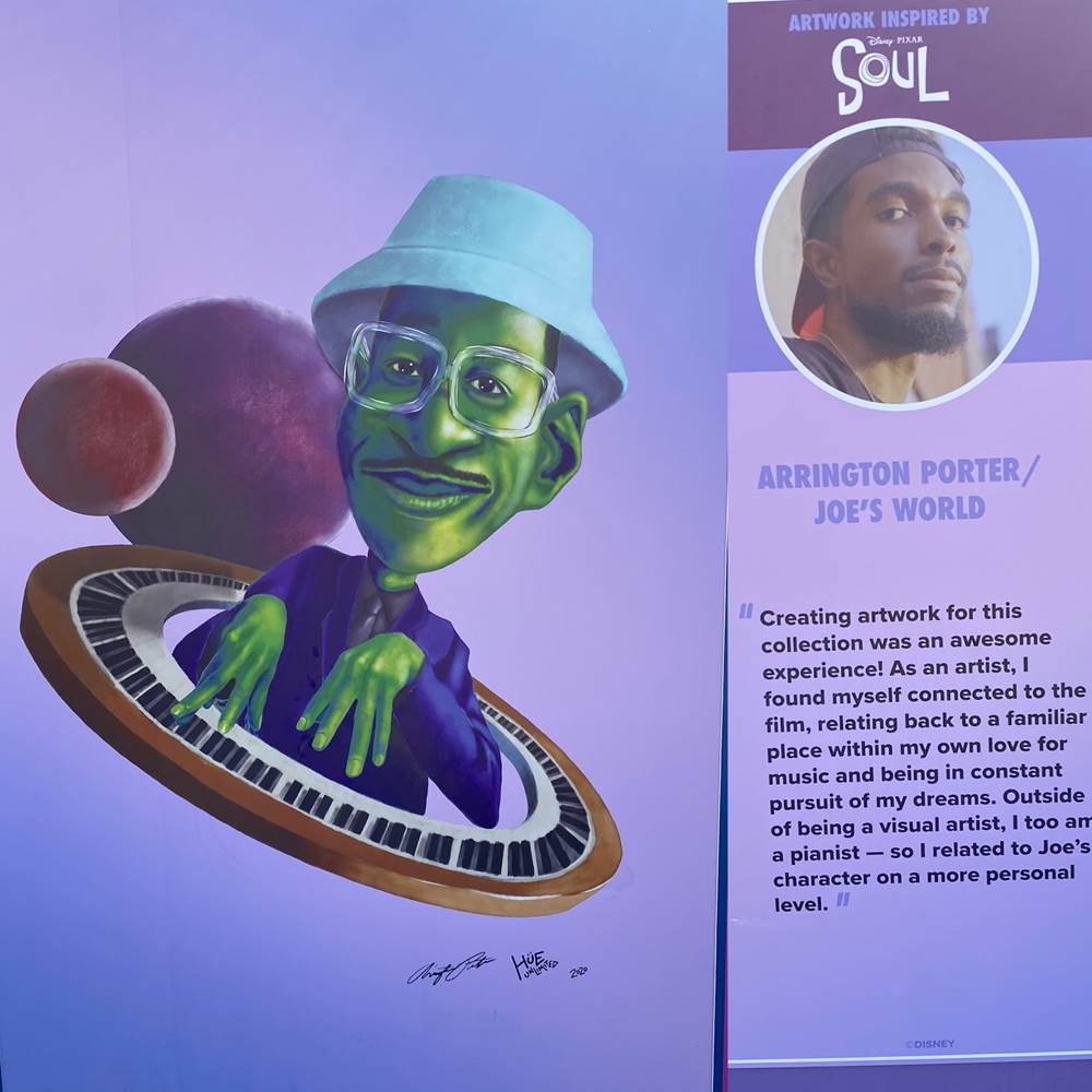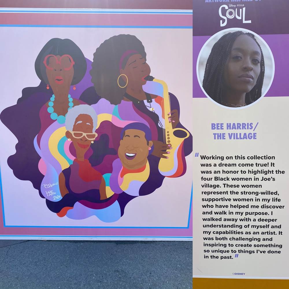 I started at the Downtown Disney area, where there were vendors and featured Artwork by different black artists. The art that I saw featured in the area was dedicated to the movie Soul.