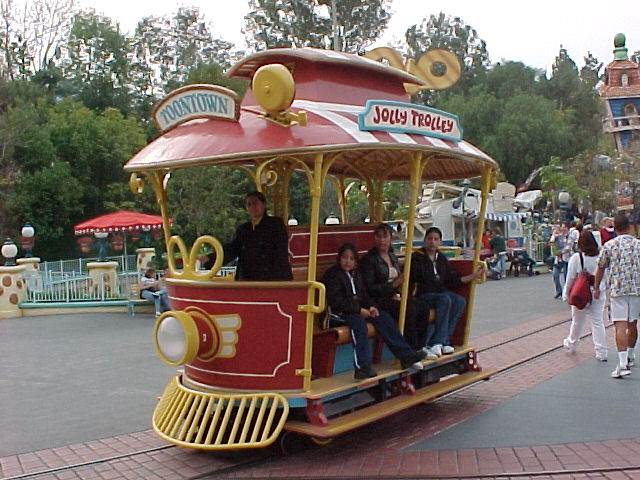 It’s hard to imagine that such a small land, at less than three acres in size, can have two separate districts, but Mickey’s Toontown pulled it off brilliantly. As guests enter Mickey’s Toontown, they go beneath the train tracks of the Disneyland Railroad and immediately are transported into the cartoon world of Mickey’s Toontown, but are closer to the first half of the land, Downtown Toontown. At opening, Downtown Toontown was home to the barn for the Jolly Trolley, the Toontown Cab Co. (which promised the opening of a new attraction in the near future), the retail locations, the dining locations of the land, and many, many hands-on interactive areas. The City Hall of the land is not for complaining and making reservations, but rather announcing the arrival of our favorite animated friend who are ready to take a stroll through Toontown meeting their human fans. Just past Goofy’s Gas you enter the other half of Mickey’s Toontown, called Mickey’s Neighborhood. Here is where all the Meet and Greet locations can be found, most in the residences of our favorite characters. Mickey Mouse, Minnie Mouse, Donald Duck, Goofy, Chip and Dale, and Gadget (from Chip ‘N’ Dale Rescue Rangers). Gadget’s house is also home to what is the first roller coaster for many-a-kid, Gadget’s Go-Coaster. The Jolly Trolley would run the length of the land, running from Downtown Toontown to Mickey’s Neighborhood with stops in between.