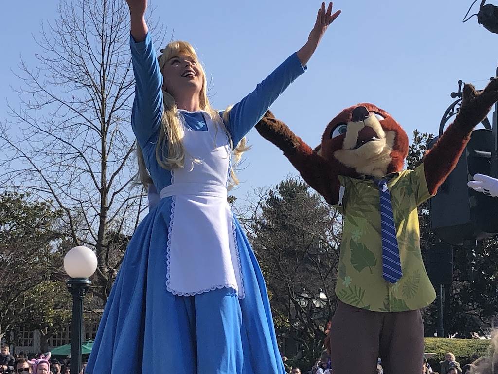 The best way I can describe this show is “frenzied” but in a good way. Everywhere you look something is happening, and characters are constantly moving around. It’s completely crazy and so much fun! For guests who don’t want to watch the entire show, they can enjoy the parade portions at the beginning and end. The parade starts on Main Street, stops at the Hub for the show, then heads back down Main Street.