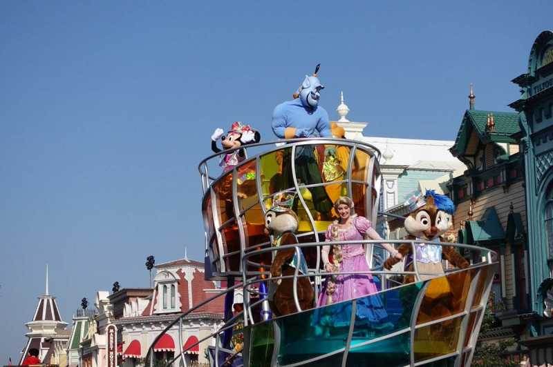 After coming up Main Street to the track “Ready for a Ride,” and bringing up the energy in the process, the floats come to a stop near the castle as the music transitions to the 30th anniversary theme “Un Monde Qui S'illumine.” By the way, if you’re wondering why the parade has two different themes, show producer Astrid Gomez explained during a panel that, when the creative team solicited for songs, they enjoyed these two so much and couldn’t decide between them. The solution? Just go with both. Brilliant.