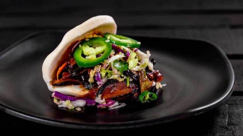 - Mushroom Bao: Hoisin-glazed mushrooms, Asian slaw, and jalapeño in a steamed bao (available with Sip & Savor Pass)