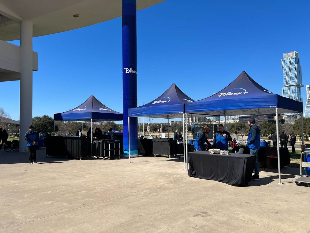 Disney+ brought some magic to Austin, TX today with three free outdoor movie screenings at SXSW. Located in an open-air space at Long Center Terrace, the event was open to the public, whether they were attending the convention or not. Photo opportunities in the form of four inflatable standees made it hard to miss the Disney presence along Lady Bird Lake.