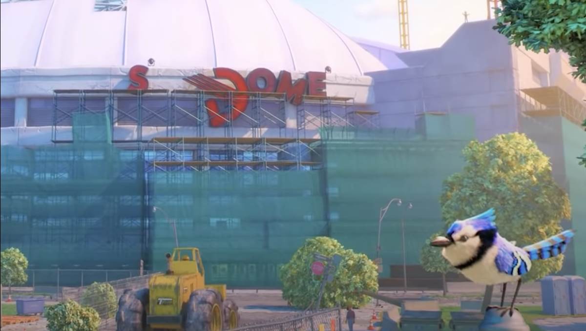 This one doesn’t refer specifically to a Pixar film, just a subtle nod for sports fans out there. When we pan out and see the stadium being rebuilt, in the foreground of the shot a Blue Jay appears. If you remember that the film takes place in Toronto, that could be a Toronto Blue Jay, which is the baseball team that would play at that stadium.