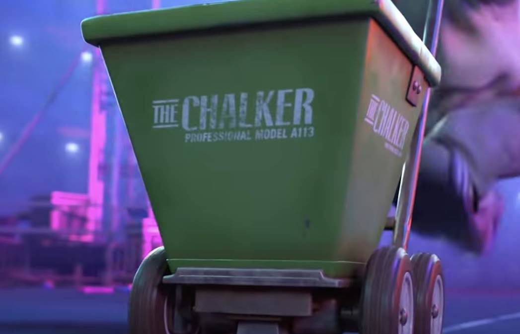 Turning Red features the infamous number pretty clearly but it happens so quickly that if you blink you’ll miss it. As you may recall, during the film’s climax at the stadium, Dad runs and gets a chalking device to draw the circle that will allow the de-panda-fication ritual to take place. While we only see brief glimpses of him running, it's on the front of his chalking cart where we see the A113.