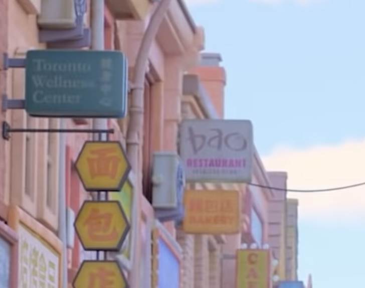 While Domee Shi may be a first-time feature director with Turning Red, she has previously won an Academy Award for her short film Bao. Many of the themes and cultural influences of that film carried over into Turning Red, and it should come as no surprise that you will find a reference to Bao. You can see that a restaurant in Toronto is called the Bao Restaurant, and has the same typeface and logo of the short on the restaurant’s marquee.
