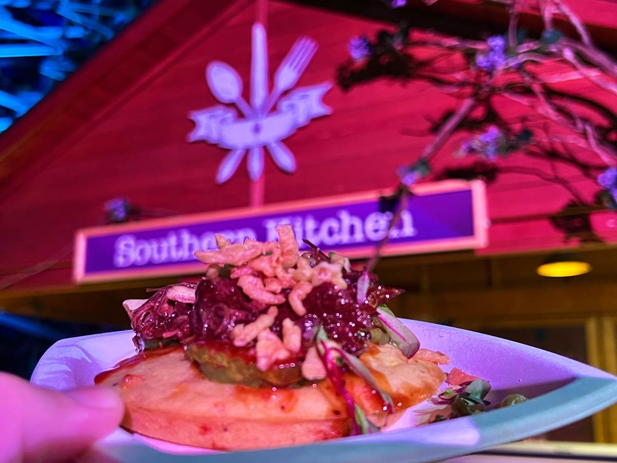 One of the best parts of this night was being able to ride Iron Gwazi with little to no wait. Not only did I get to ride one of the world’s most intense coasters, but I also had the opportunity to sample some amazing dishes. The stand out item for me was a huge surprise, the Reimagined Impossible Mini Avocado Slider from the Seasonally Inspired Cabin. This may be an Impossible Slider, but every person I spoke with swore it was an all beef burger. Most Food & Wine items for me are one and done, but this one will be something I’ll go back for as many times as possible.